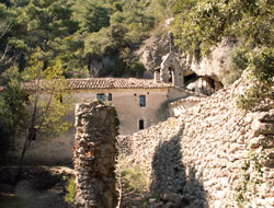 Ermitage Saint Guilhem le DésertNous arrivons à l’ermitage Notre-Dame-de-Lieu-Plaisant, véritable havre de paix (hors période d’affluence) accroché à la falaise, dont les espaces ombragés sont propices au pique-nique.